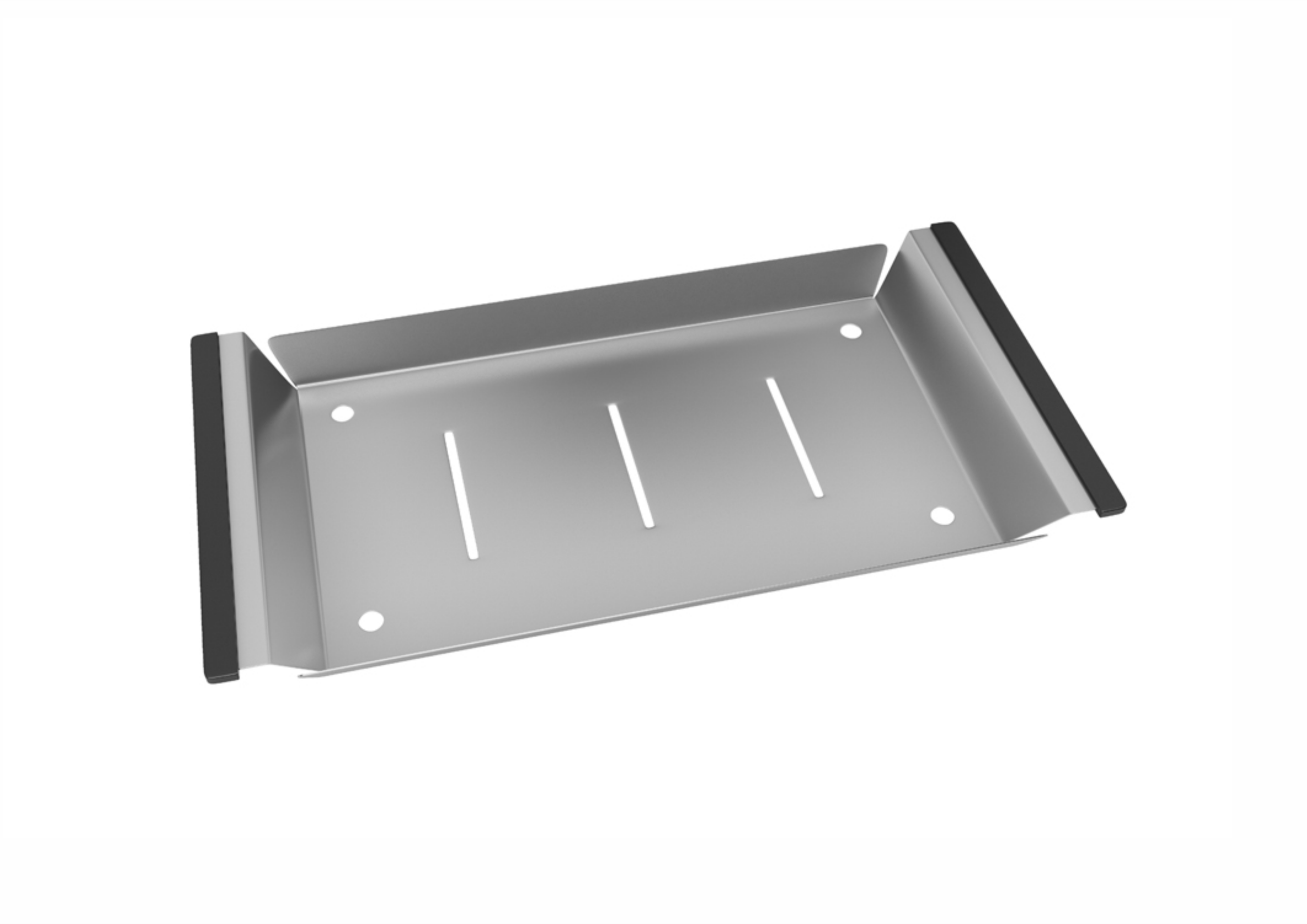 A Bandeja Retangular Rasa De Bacco foi desenvolvida para complementar as cubas da coleção Quadratino sem canal, ampliando a área funcional da cuba e facilitando o uso diário.