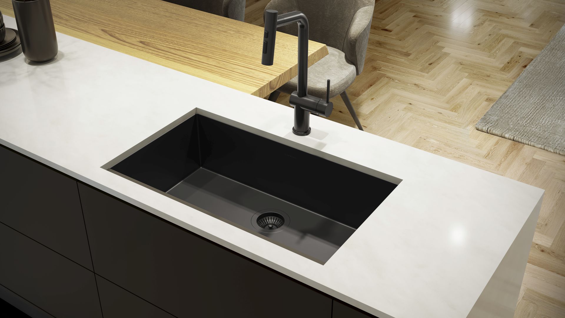 Desenvolvida para integrar cozinhas modernas e luxuosas, a Cuba Primaccore 700 PVD Grey De Bacco destaca-se como um elemento de forte impacto visual e refinamento estético.