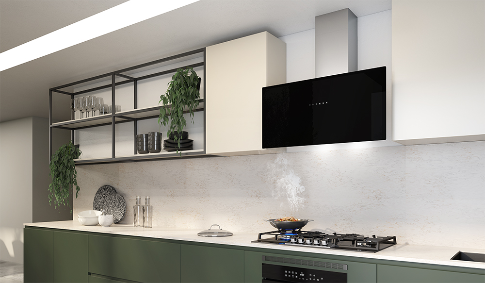 Seu sistema ergonômico com abertura frontal automática é acionado ao ligar a coifa, proporcionando mais conforto no uso diário. Equipada com painel touch, três velocidades de sucção e vazão de até 1.000 m³/h, pode operar nos modos depuração ou exaustão, com aspiração central para máxima eficiência na captação de vapores e odores.